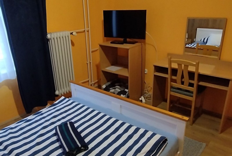 2+2 fős elhelyezéssel 1 db 160*200 cm franciaágyon és egy kihúzható kanapé pótágyként áll rendelkezésre