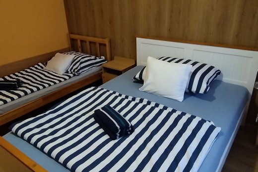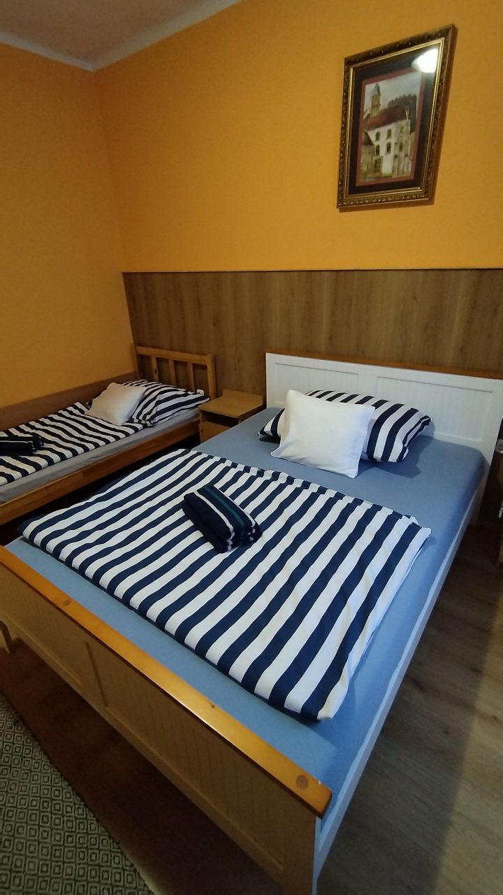 Ez a háromágyas szoba síkképernyős kábel-TV-vel és saját fürdőszobával rendelkezik. A szobában 2 ágy található.